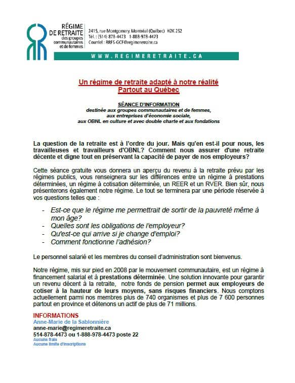 La TROCAO est heureuse d’inviter le Régime de retraite des groupes communautaires et de femmes pour un séance d’informations en Outaouais!